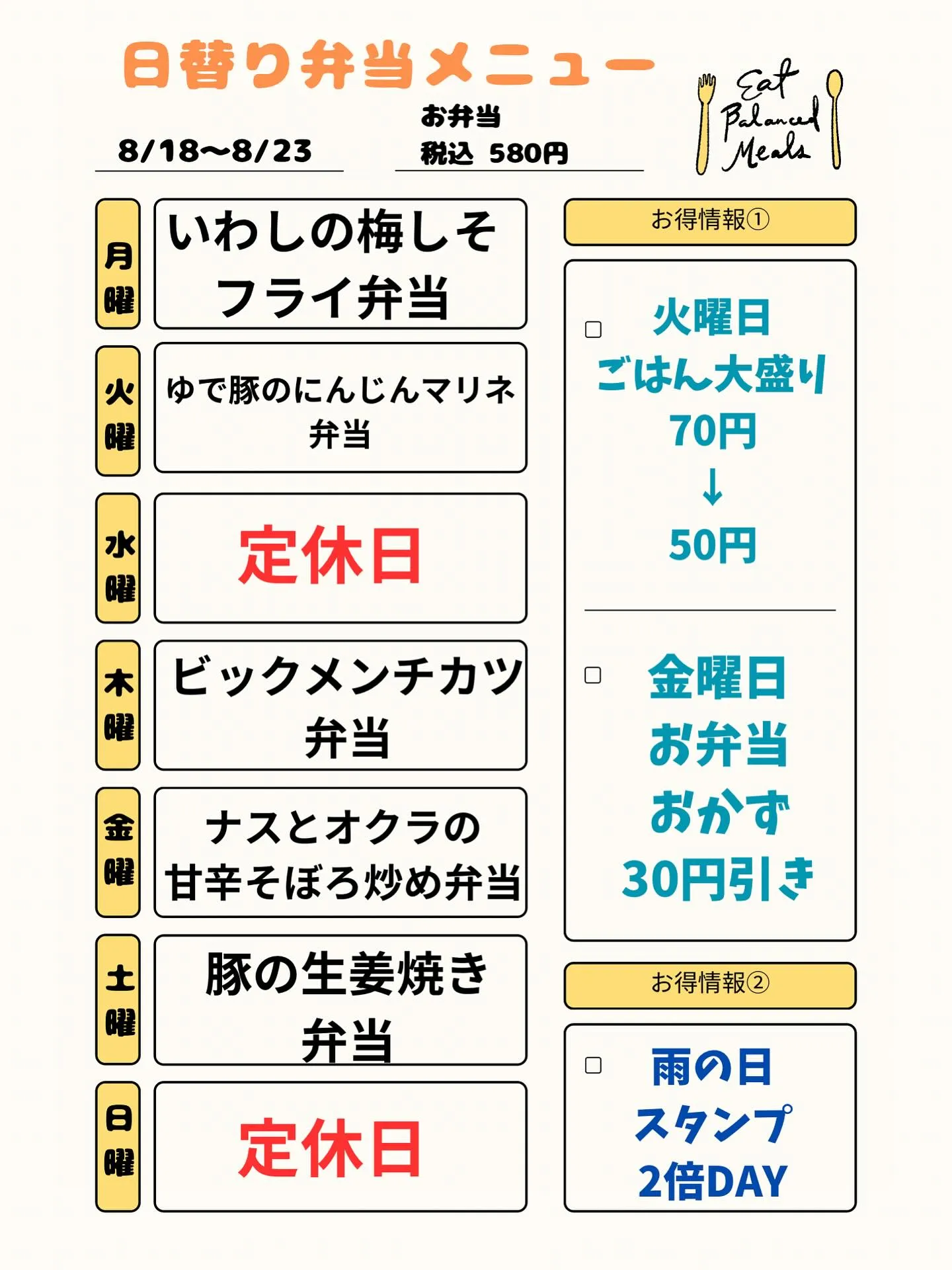8/18〜23日替り弁当メニュー